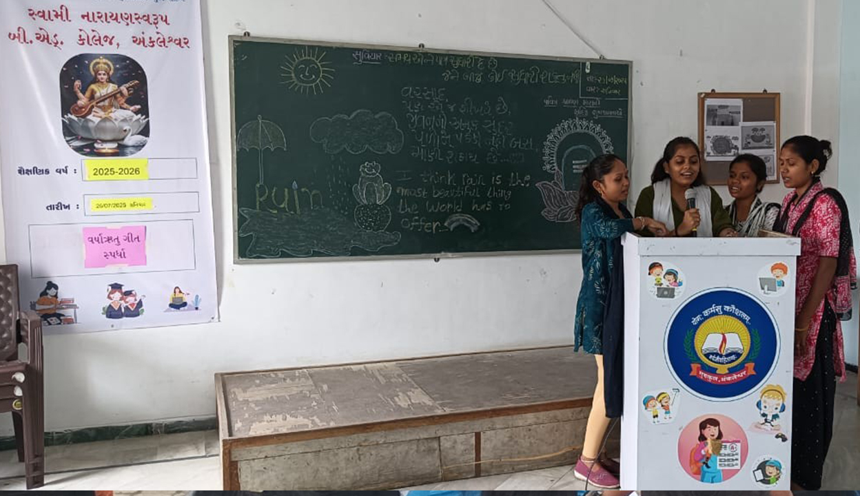 Swami Narayanswarup B.Ed. College - Ankleshwar (Gujarat) is a Recognised College, Managed by Society: Shree Swaminarayan Seva Niketan and affiliated with Veer Narmad South Gujarat University, Surat. Swami Narayanswarup B.Ed. College is one of the recongnised institue in Ankleshwar (Bharuch) region for providing Quality Education.